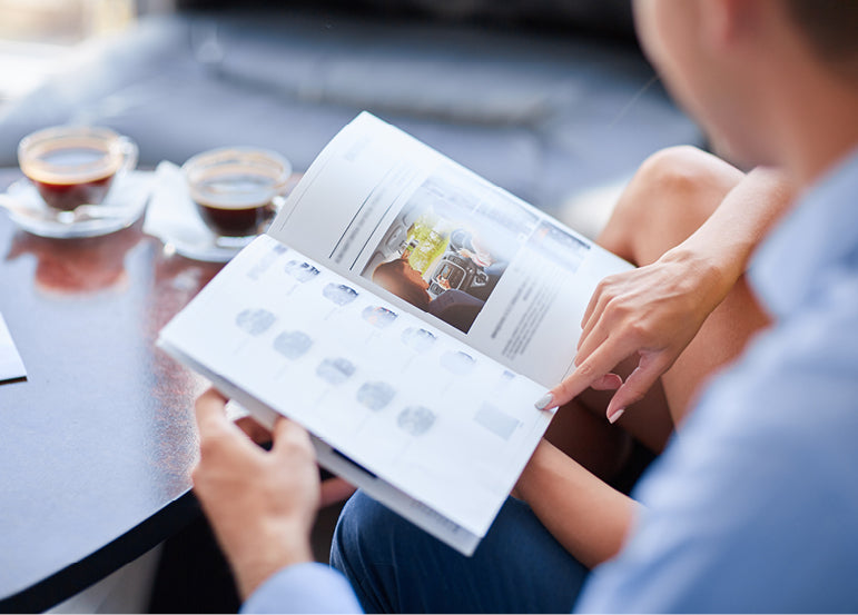 Im Vergleich zu klassischen Klammerheftungen oder Falzbroschüren sind klebegebundene Broschüren für sehr hohe Seitenzahlen geeignet. Das macht sie zur idealen Wahl für Druckprodukte, in denen Sie viele Informationen, Services oder Produkte stilvoll präsentieren möchten: